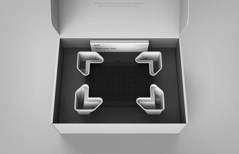 I led the design of the XFINITY X1 e-commerce packaging, branding, and graphic design for Comcast. I created a packaging system that could fit 15 different devices securely and elegantly. I also oversaw the manufacturing and engineering processes to ensure the quality and integrity of the design. I designed the packaging to be intuitive and engaging, using touch to guide the customer through the product experience. The device, the documentation, and the accessories were revealed in a logical order. This design was a huge success, achieving one of the highest EPS scores in the company’s history. We produced 500k units and secured millions more in future bookings from the client. I managed a team of over 10 people across different disciplines, ensuring collaboration and coordination throughout the project.